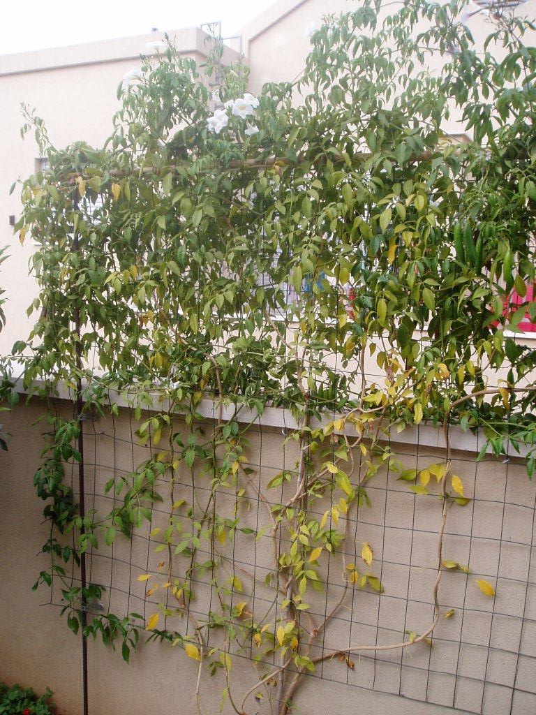 בגינתי שתלתי 3 פנדוריאה יסמינית כדי שיחצצו ביני לשכנים. אחד מהצמחים לפני כחודשיים וחצי החל להצהיב ולאבד מהגוון הירוק שלו. עם זאת, כולם כולל הוא הוציאו פרחים רבים. פניתי למשתלה שבה קניתי והמליצו להגביר השקייה ולהוסיף ברזל. כיום הצמח מושקה בטפטפות כ-6 ליטר בשבוע ומקבל עוד מים מהממטרה של הדשא הסמוך לו. עם זאת גוון הצמח ועליו מוסיף להיות צהוב משהו, יותר משני אחיו שמקבלים אותה כמות.