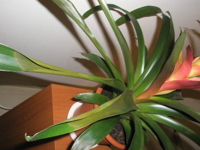 לפני 4 ימים הצמח החל להראות סימני התייבשות: כתמים כהים במרכזי העלים הבוגרים ולאחר מכן מס' עלים החלו להתקפל במרכזיהם(מצ"ב תמונת הצמח).