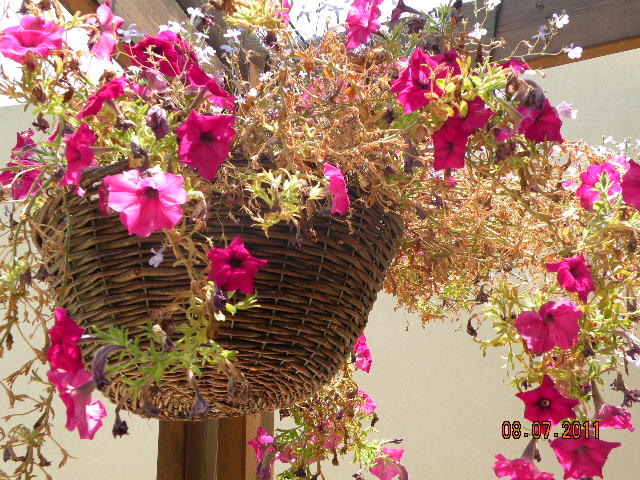 2. יש לי פיטוניה מפלית בעציץ תלוי -צרפתי תמונה. הענפים שלה הצהיבו אך יש עליה הרבה פרחים. האם יש דרך ליפות אותה ולהחזיר לה את הירוק והפריחה? כיצד אפשר ליצור ייחורים?