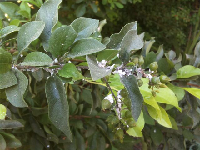 למרות התמונות המטושטשות,רואים כאן כנימות קמחיות. טיפול הכי פשוט,הגמעה בקונפידור.חומרי הריסוס המתאימים יצאו מהשוק. יש אחרים שאינם ידועים לנ מספיק כי הם חדשים. אבל ריסו בסימשופר עשוי לעזור. חשובה תוספת מים.