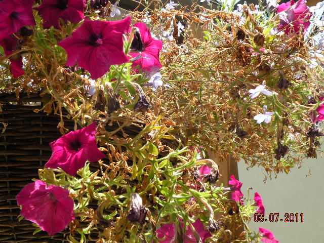 2. יש לי פיטוניה מפלית בעציץ תלוי -צרפתי תמונה. הענפים שלה הצהיבו אך יש עליה הרבה פרחים. האם יש דרך ליפות אותה ולהחזיר לה את הירוק והפריחה? כיצד אפשר ליצור ייחורים?