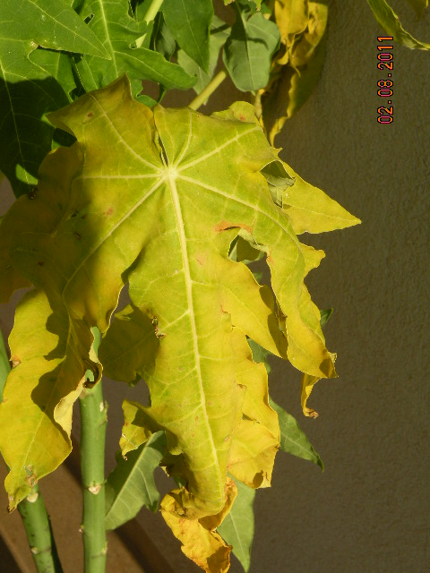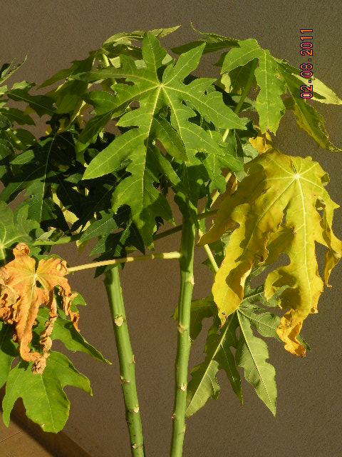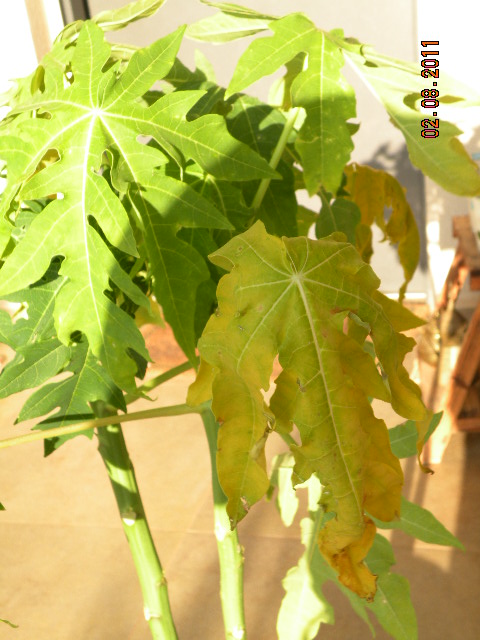 אתמול הבאתי מהמשתלה עץ פפאיה. הוא עומד מאתמול בשמש ישירה והשקתי אותו בעציץ לרוויה. חלק מהעלים שלו התחילו להפוך לצהובים ומסכנים. מה קורה לעץ?