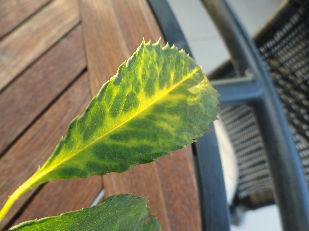 פגיעה ויראלית של וירוס המוזאיקה של הורדניים. אין מה לעשות. הצמחים עשויים להראות סימני התאוששות מעת לעת, בפרט בתקופות הקיץ החמות והיבשות, אבל באופן כללי מצב הצמחים יתדרדר עם הזמן. הם עלולים להגיע למצב של הלם ולהפסיק להתפתח, להשאר מגומדים, ופרחיהם אם יהיו יהיו מעוותים ובמספרים נמוכים מהרגיל. האם יש לך תמונות של פריחה מהעונה האחרונה? אם כן, צרפי כאן לבחינה. הפגיעה קרתה כנראה, לפחות על אחד הצמחים, עוד במשתלה היצרנית ומשם עברה לאחרים על ידי השקיה שגויה, כגון התזה או המטרה המרטיבות את העלים, אבל יתכן גם בגלל גשם בעונה שעברה. אפשרות אחרת היא שהפגיעה קרתה לגמרי אצלך, שוב בגלל השקיה לא נכונה כנ"ל. על כל פנים, אין לך מה לעשות מלבד להמשיך להשקות את הצמחים ולקוות שיתנו לך עוד מספר מופעי פריחה. עם זאת, אם יש בקירבת מקום בני משפחה נוספים (מבין הגלעיניים כגון שזיף, משמש, שקד, אפרסק, וכיו"ב) הייתי שוקל להרחיק את הצמחים הפגועים בהקדם לפני שהפגיעה תתפשט אליהם.