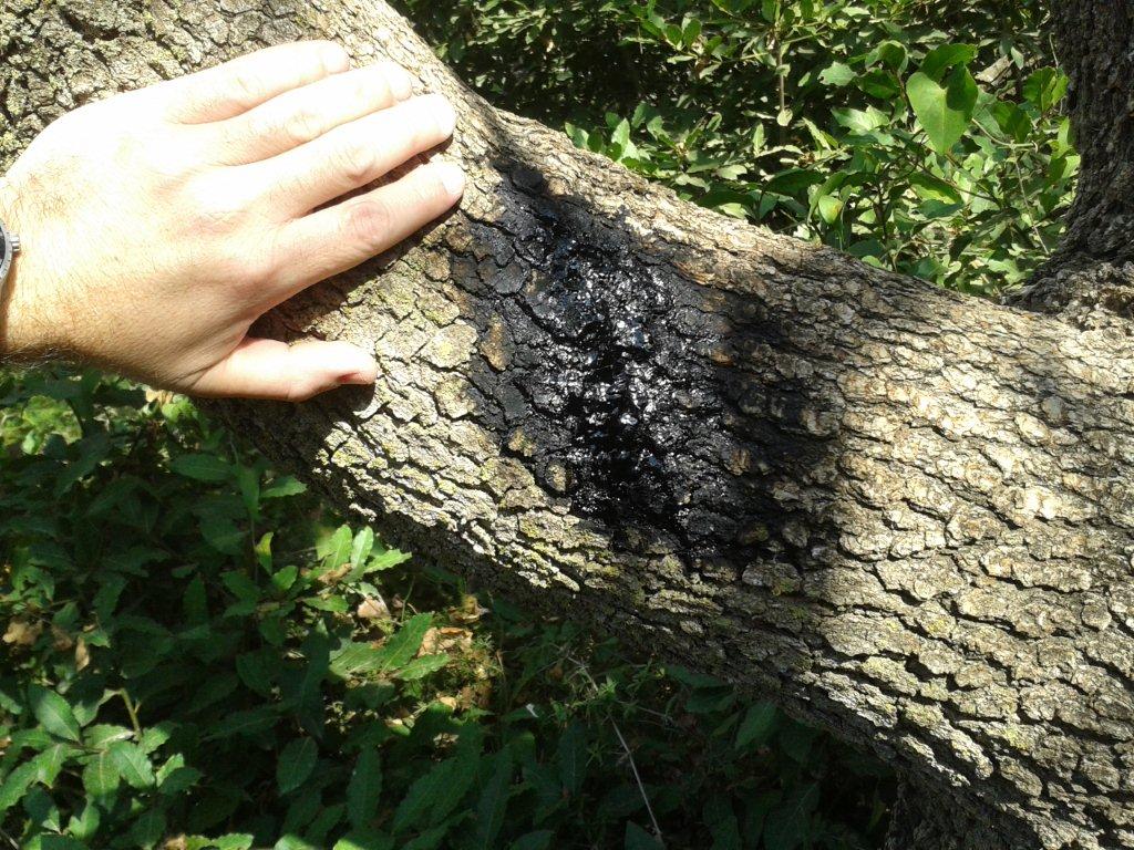 אני מתובל, ישוב בגליל המערבי בגובה 550 מ'. בעץ אלה ותיק אצלנו, שכבר נמצא בשלכת מתקדמת ב19.8, הופיעו כתמים שחורים גדולים על הגזע ובענפים המרכזיים. החומר נראה כמו שרף אך אין חור כניסה או נסורת כפי שאני רגיל לראות מסס הנמר. מצ"ב תמונות. מה יכול להיות המפגע? האם קטלני?