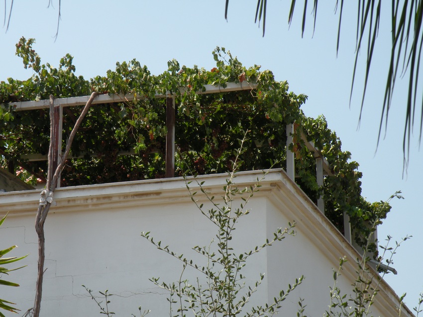 מדובר בבית קרקע גבוה בן כמעט 3 קומות,הגפן נטועה בחצר ומטפסת עד לגג הבית על הקירות שם משתרכת לה לתוך גג הסוכה-פשוט מדהים. גג הבית שבמקום לבנות שם עוד חדר או מחסן כמנהגם של רבים-בעלי הבית בחרו בסוכה.