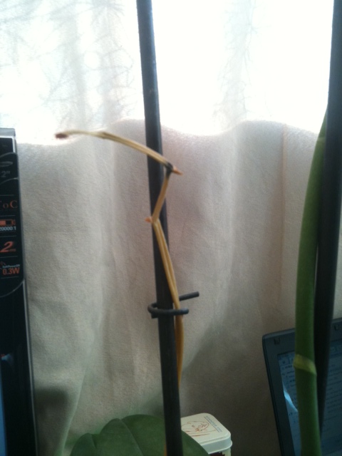 היום הפרח העליון נפל. שמתי לב שכל הגבעולים המחוברים לפרחים המקופלים - צהובים.