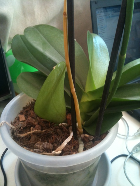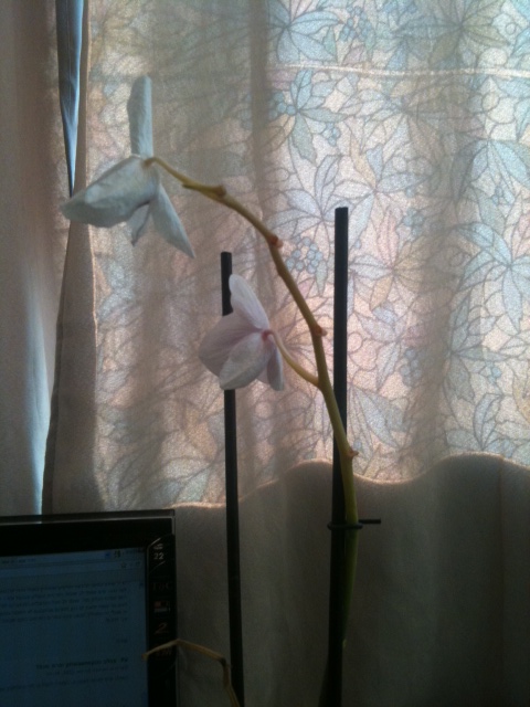 לפני כמה ימים שמתי לב שאחד הפרחים (העליון בגבעול שלו - יש שני גבעולים בעציץ)) מתחיל להיסגר. אחרי יומיים נסגרו גם שלושת הפרחים האחרים, הנמוכים יותר באותו גבעול.