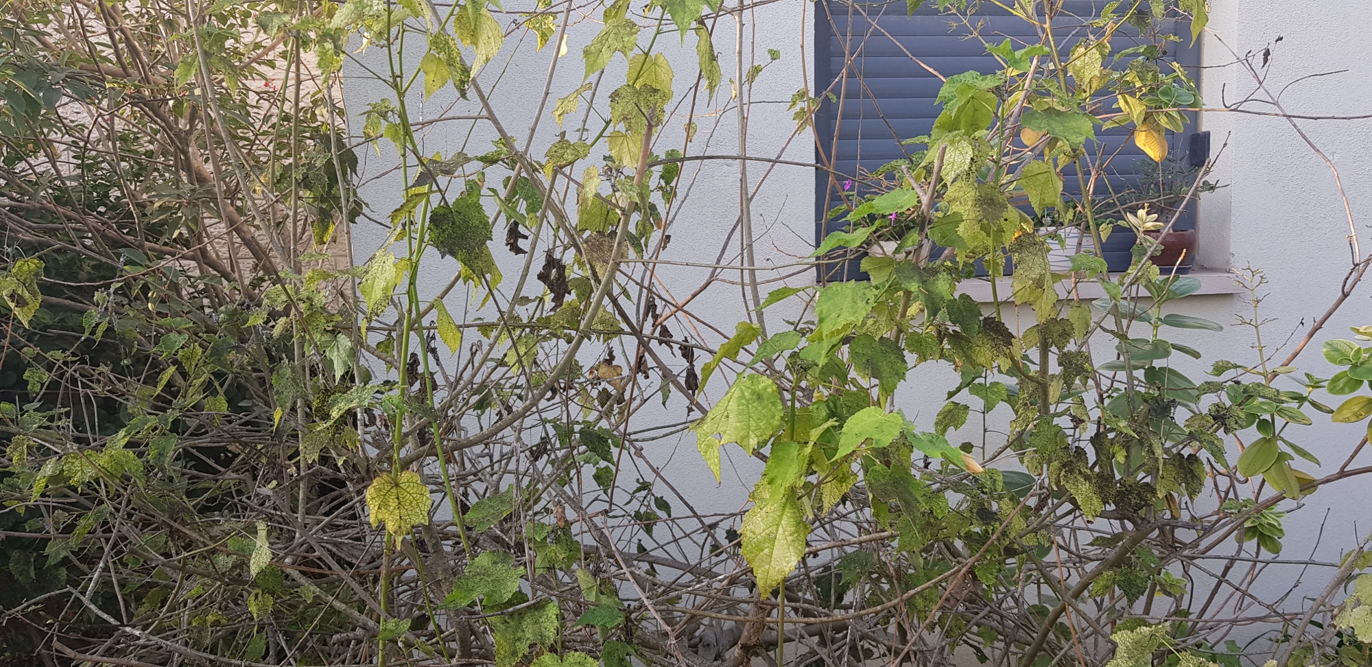 גיזום חזק של השיח קודם כל. שנית להקדים את השאלה למצב הצמח ולא לחכות לקטסטרופה שהוא נמצא בה כרגע. לאחר מכן הגמעה בקונפידור לתוך הקרקע שליד הצמח. לבצע לאחר השקיה טובה.