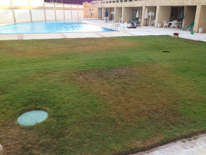 בקיץ שעבר התגלו סימני יובש על המדשאה, למרות שהדשא הושקה 30 דקות מדי יום (כך היה משטר ההשקיה הנהוג לפני שהתחלתי לטפל בגינה זו)