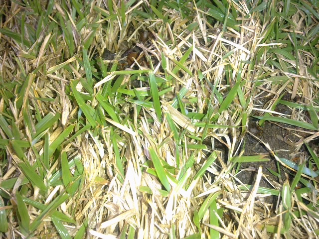 כאמור לפני כחצי שנה החלו להווצר כתמי יובש בחלק מהמרבד.זה בא לידי ביטוי בדשא שפשוט מתכווץ ומתייבש.ניתן לראות היטב בתמונות.