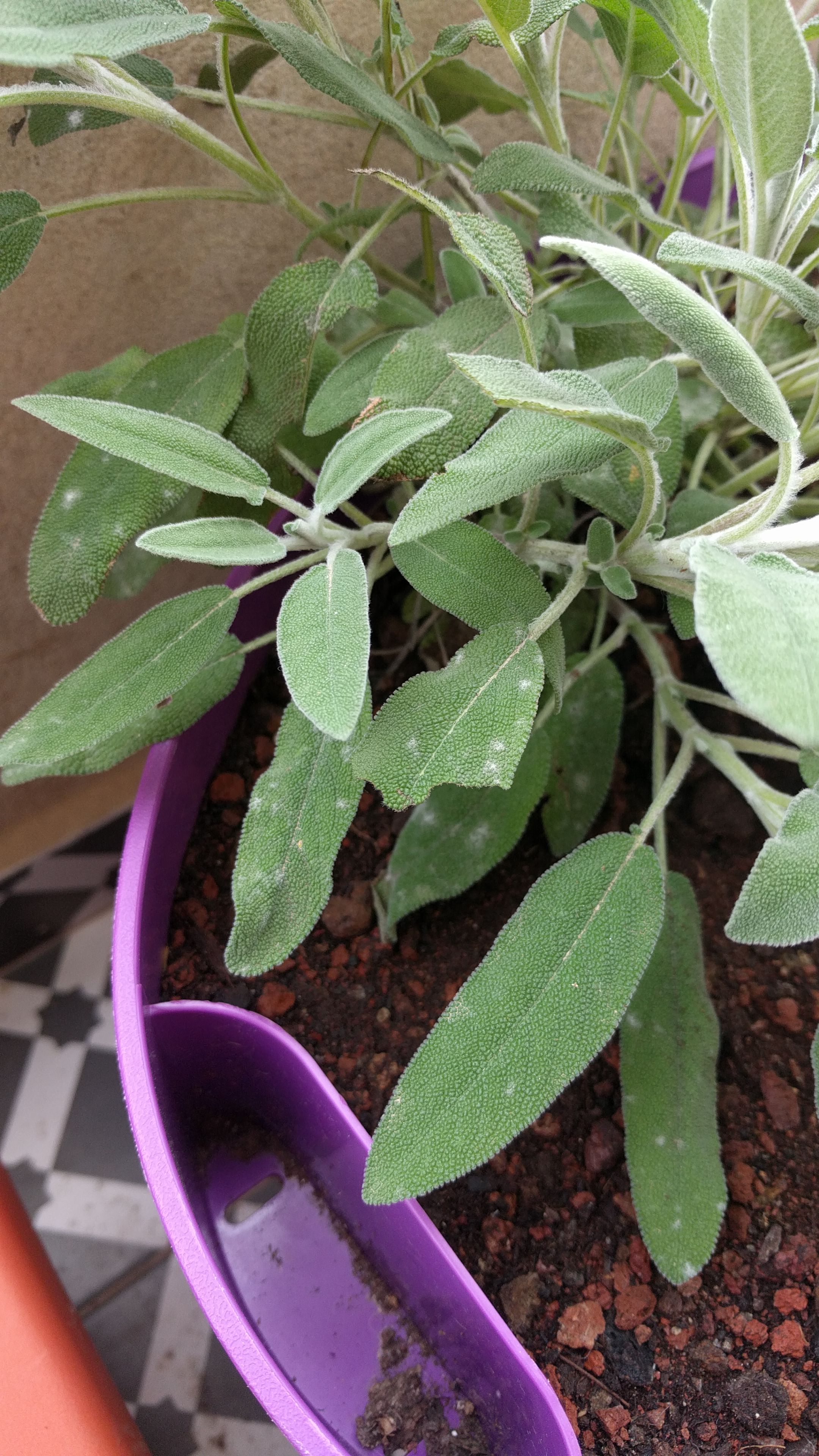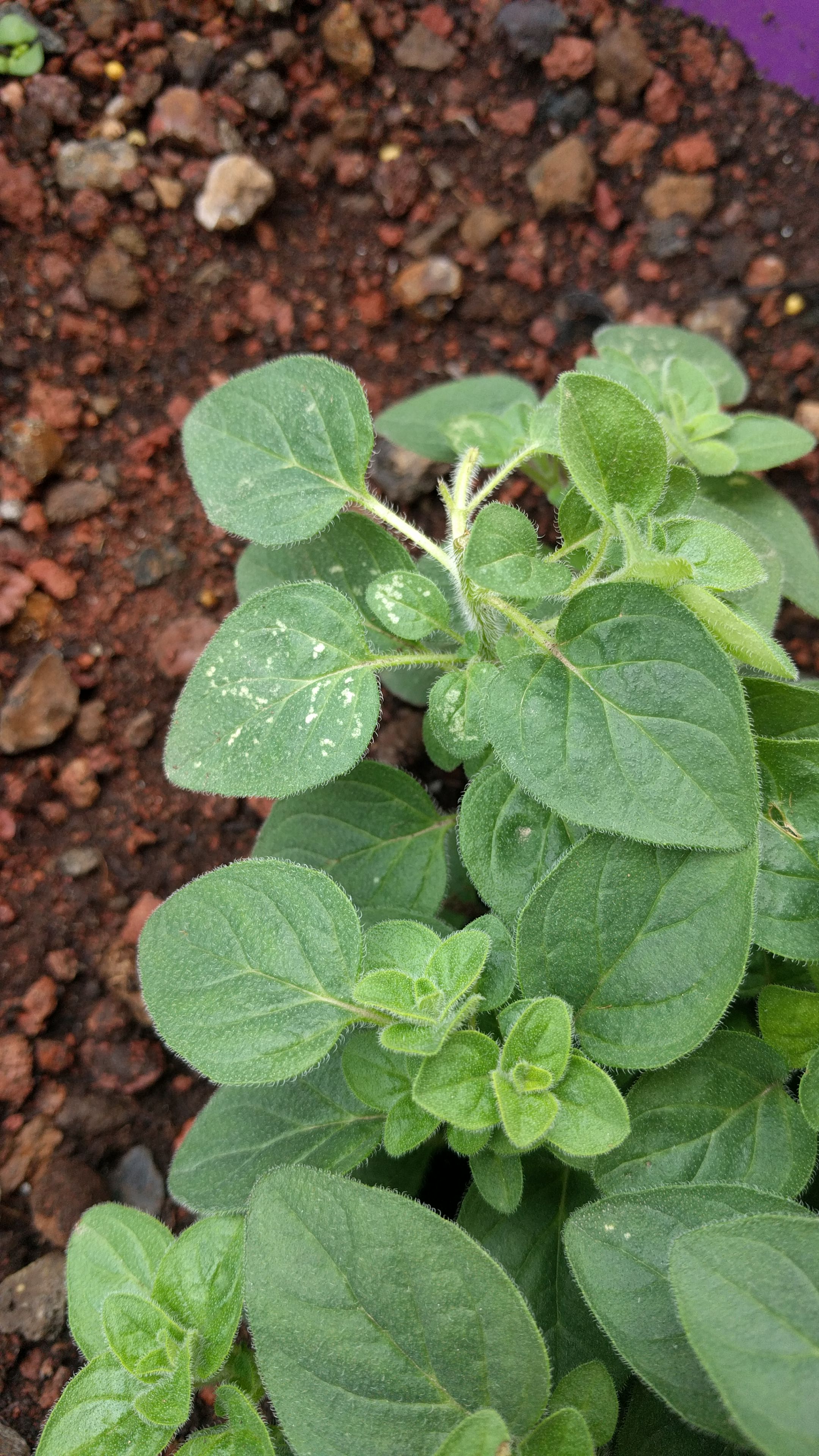 השבוע הופיעו נקודות לבנות ומעט חלקים אכולים על עלי המרווה ונקודות לבנות גם על האורגנו.
