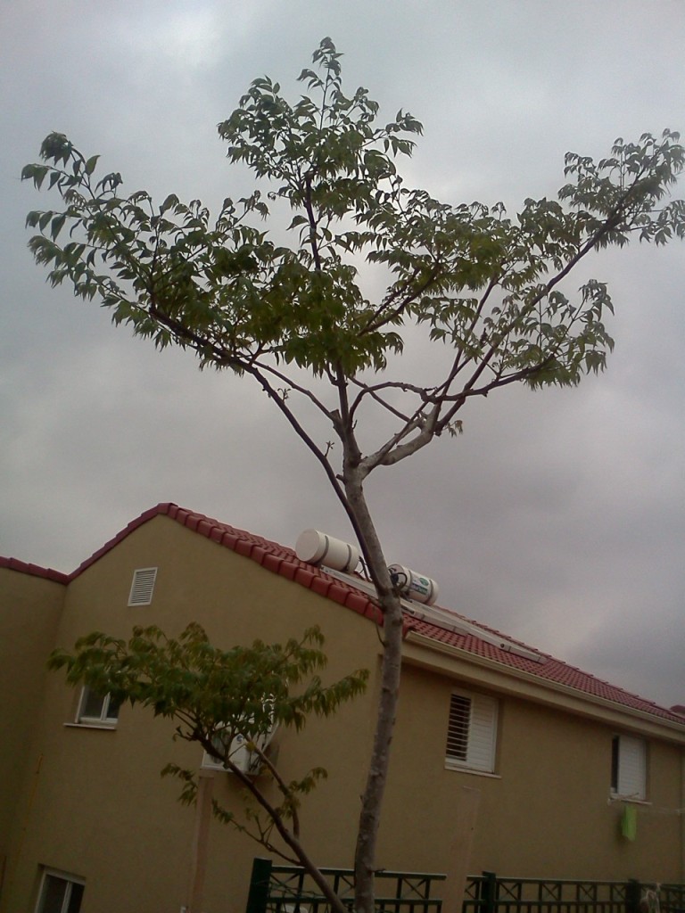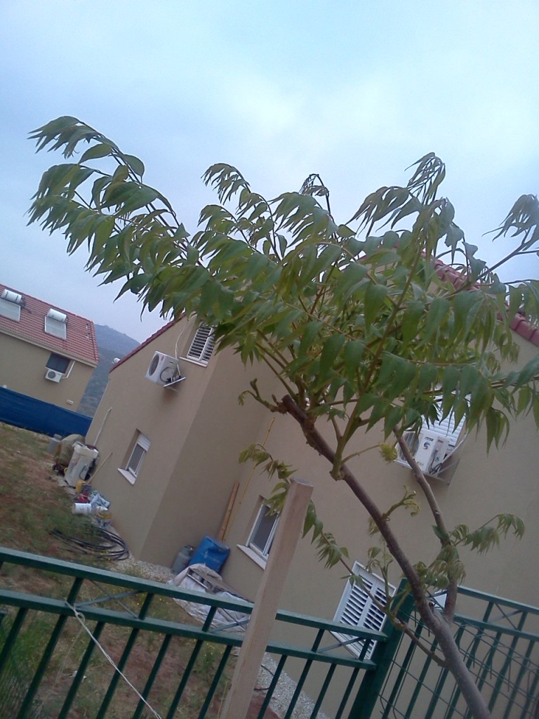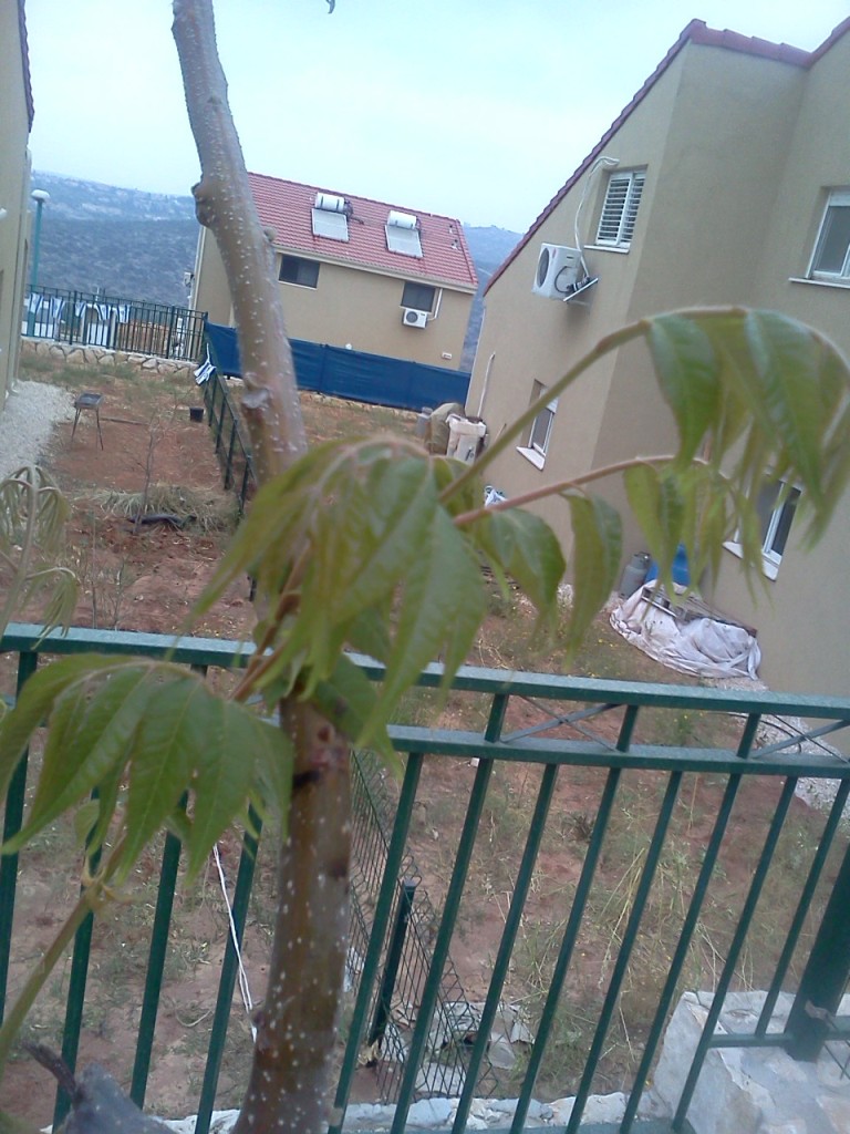 נתונים נוספים: אנחנו בגובה 400 מ', באזור צומחות קלורוטריות רבות, וכולן מכוסות עכשיו בעלווה ירוקה יפה. השקינו (חוץ משבועות גשומים) כ-30 ליטר בשבוע, אם כי כמעט לא השקינו בשבועיים-שלושה האחרונים. בשתילה השתמשנו בקומפוסט, אבל עד כה לא הוספנו דשן כלשהו.