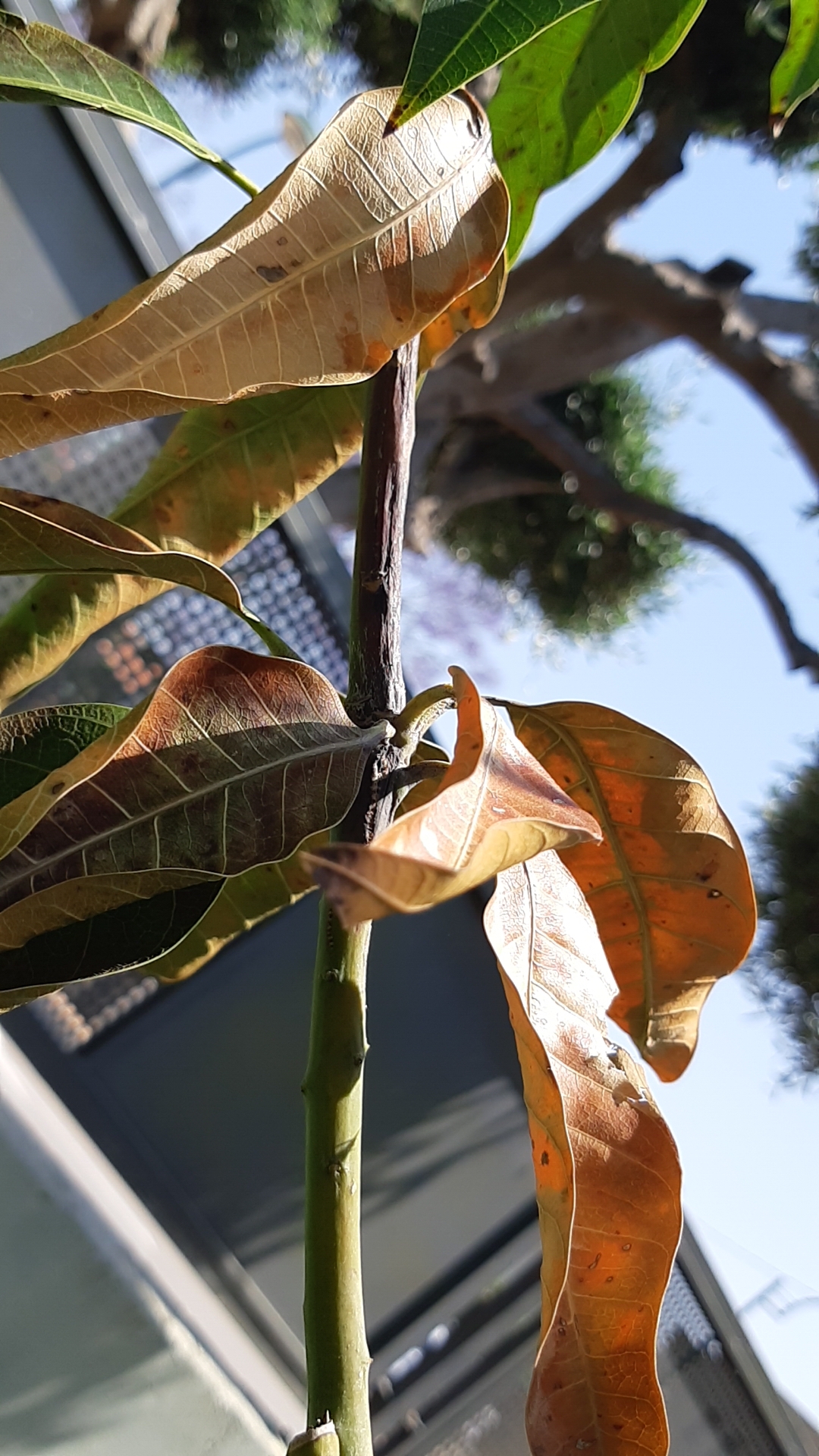 יש תופעה שהענפים מתחילים להתיבש מלמעלה למטה. עד שהיובש מגיע לפרק. זה קורה מהר, פתאום רואים את העלים מתיבשים והענף או חציו ( לאורך ראה תמונה) משחיר.