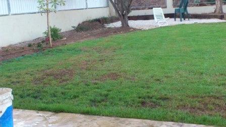 עבור עכשיו לטיפול שוטף בלבד,קרי השקיה. כל היתר יוכל רק להזיק.אבל נסה בכל זאת לפזר חד פעמי דלא גרין על הדשא ואחר כך חדל טיפולים מחוץ למים לשנה זאת