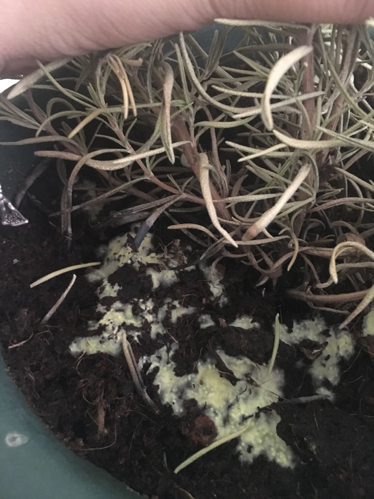 באדמה של עציצי התבלין שנמצאים בסלון הופיעה מעין פטריה חוטית עם נקודות לבנות או אולי אלא ביצי חרק כלשהו. זה התחיל בלואיזה והתפשט לנענע, לרוזמרין ולניצנית (כולם בעציצים נפרדים).