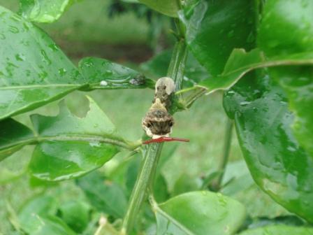 אתמול שמנו לב שעל עץ הפומלו שהוא עץ צעיר שנשתל רק לפני כמה חודשים נמצאים זחלים אימתנים (מצורפת תמונה), ברגע שניסינו להסיר אותם מהעלים הם שלפו מין זוג מחושים אדומים. האם יש לך מושג מה הם והאם הם יכולים להזיק לעץ?