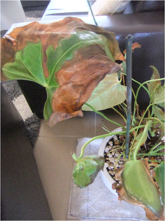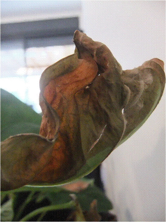 לאחר כשבועיים החלו להופיע כתמים חומים על העלים, והם ממש ייבשו את העלה איפה שהיה כתם..
