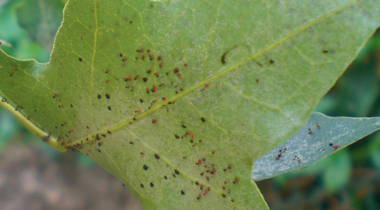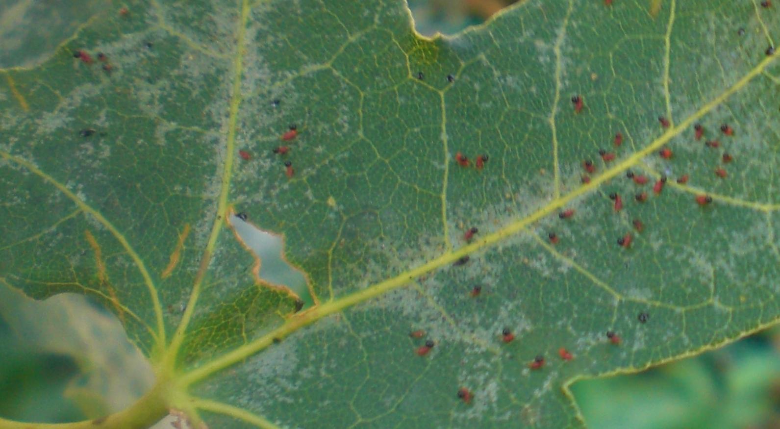 אדר טרנקטום צעיר נשתל לפני כשלושה חודשים, לאחרונה החלו להופיע על עליו חרקים דמויי סיגריה קטנטנה בגוון אדום וקצה שחור