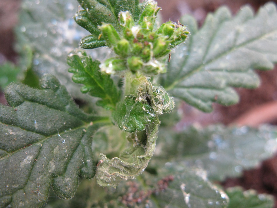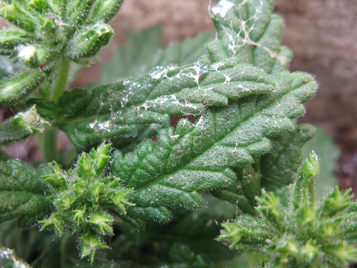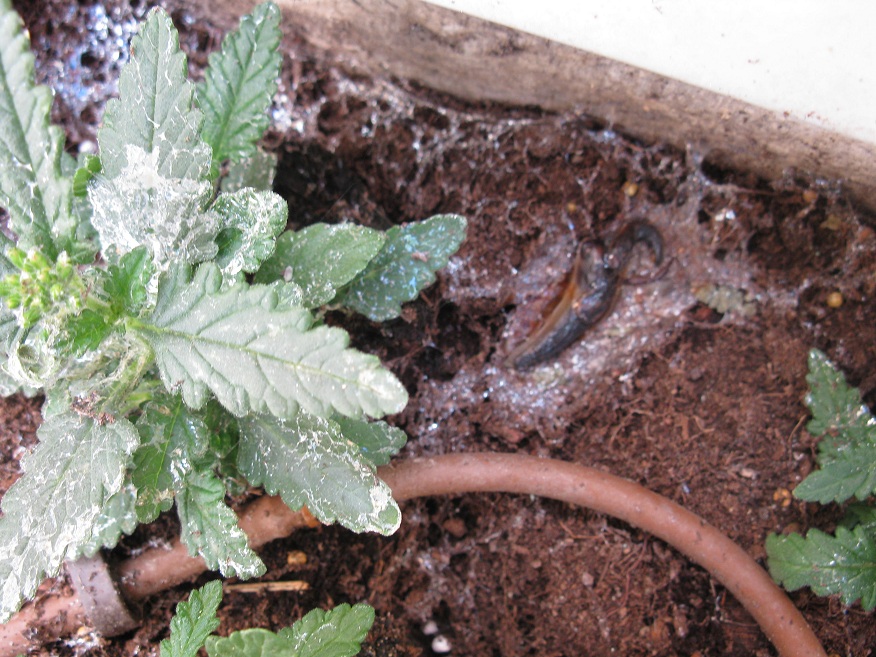 באחת האדניות, עוד לפני השתילה, ראיתי מעין רשת צפופה של קורים בצבע כסף. ריססתי את האדמה במלתיון