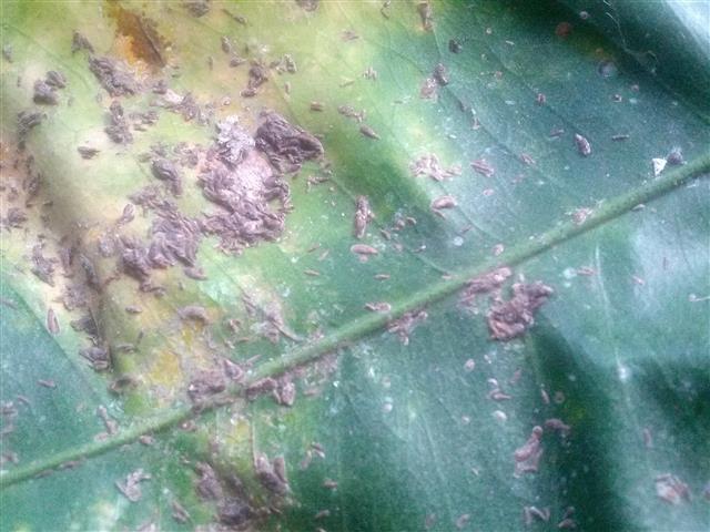 מצורפות להלן מספר תמונות של עלי עץ תפוז שנגוע במשהו.
