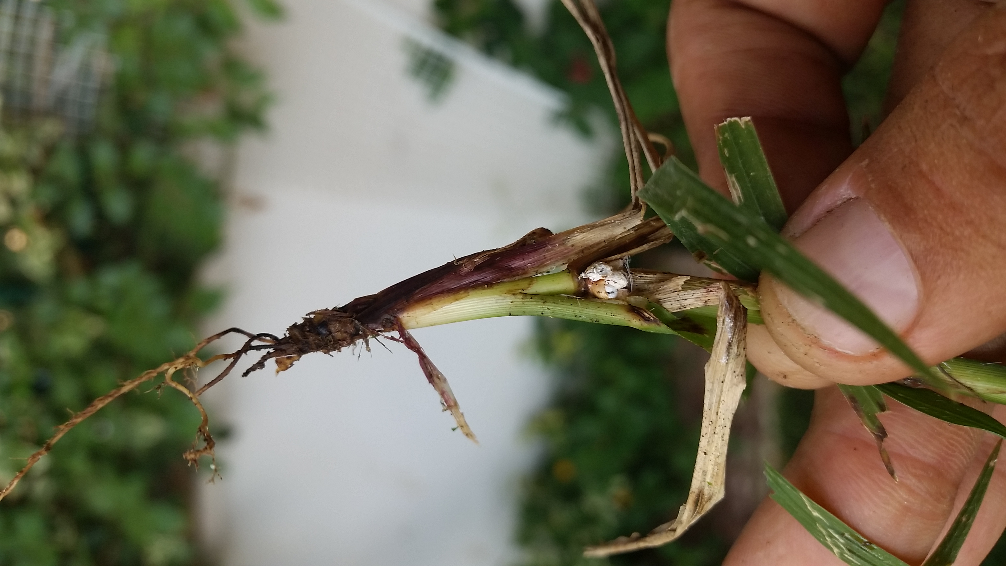 כלפי חוץ בצבע לבן במרבצים סביב המפרקים של הדשא.