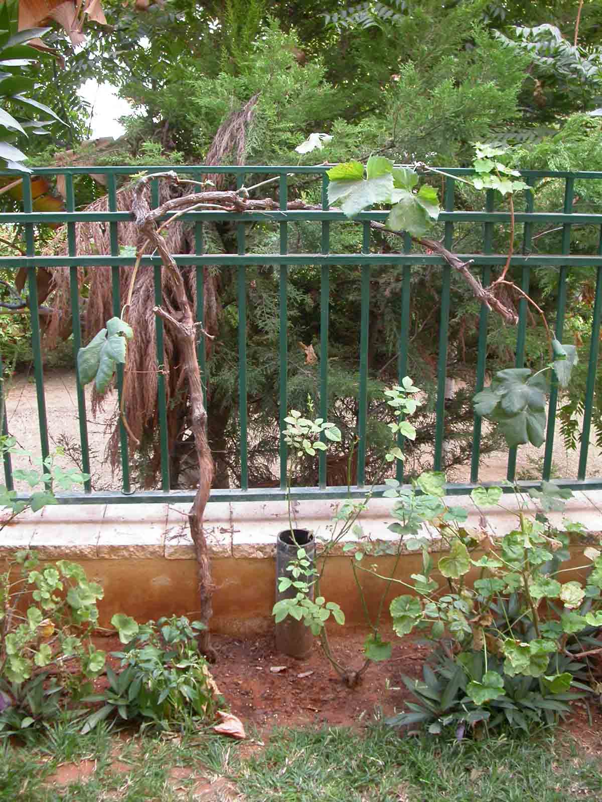 יש לציין שמדובר בשני גזעים מסוג מוסקט שמטפסים על גדר, השמאלי לא נתן בכלל פרי והימני נותן כל פעם אשכול אחד בראש הגזע שמצטמק מאפיר ומת מהר מאד. אני מעריך כי חלק מהסיבה לחוסר פרי היא גיזום לא נכון שעשיתי (גיזום שהשאיר רק שתי עניים בכל ענף, אולי גם גיזום מאוחר ולאמ באמצע החורף)