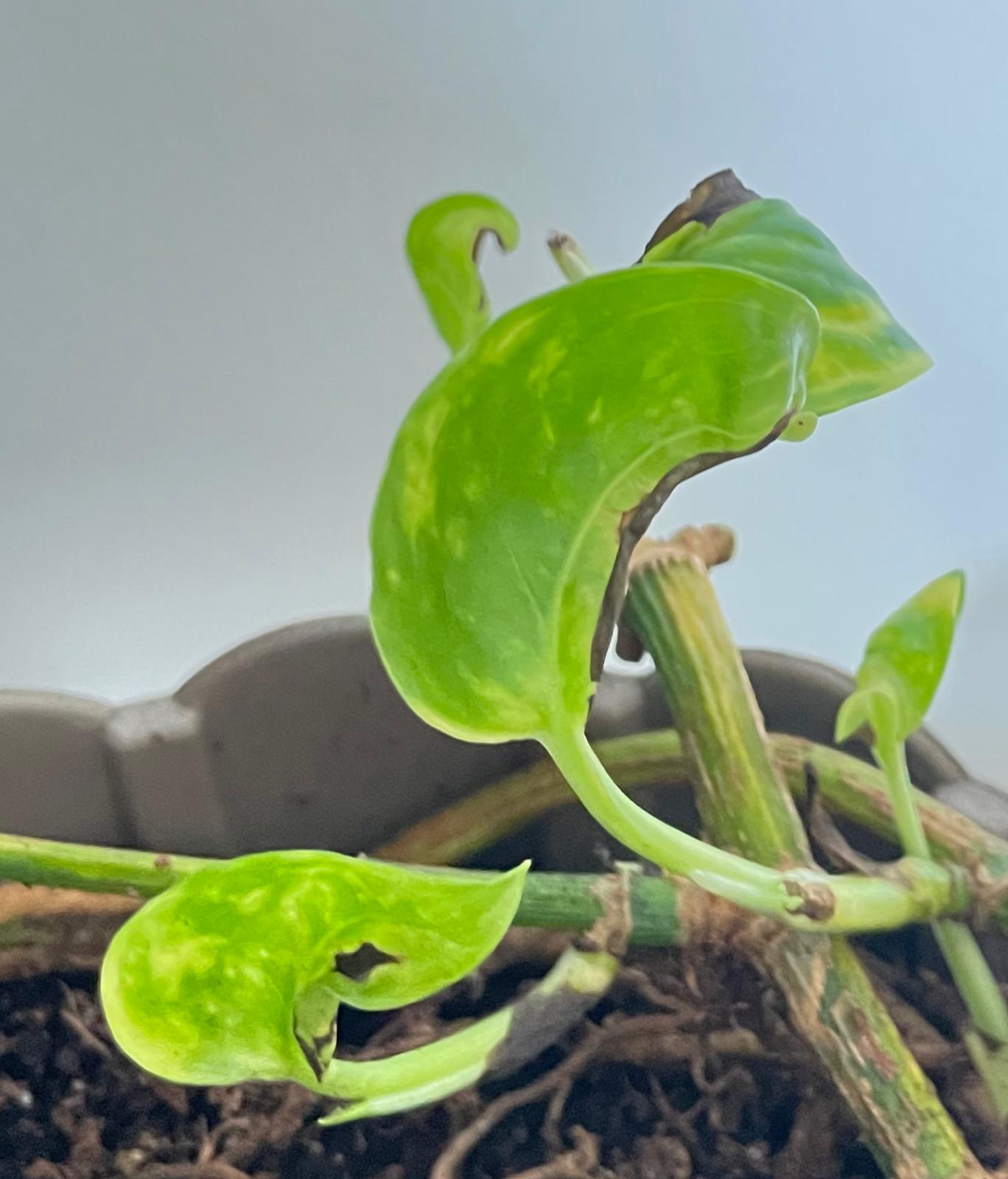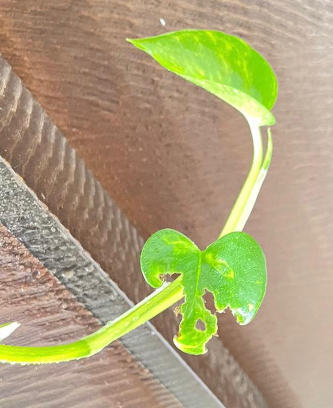 אני לא מצליחה לזהות מה אוכל לי את הפוטוס, בהתחלה היו ממש ביסים בעלים ואז השתמשתי בתרסיס יהלום, ועל העלים החדשים שצומחים יש חלקים/כתמים שחורים.