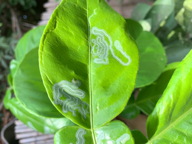 הופיע לי עש מנהרות על העלים החדשים בעץ פומלה צעיר.