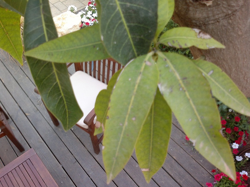 עץ מנגו בן 15 זקוק ל-100 ליטר מים ביום, וגם אם נקמץ ולא נשאף להנבה מסחרית, אזי לפחות 250-300 ליטר בשבוע מחולקים לשתי השקיות, כל אחת של 120-150 ליטר. עץ מנגו כנ"ל שהועתק ממקומו זקוק להכפלת כמות המים בשנה הראשונה. צא ולמד שהעץ שלך פשוט צ-מ-א! רק לעיתים רחוקות אני מביע דעות קיצוניות כאלה בזכות השקיה "מופרזת", דבר שחברי יואב רואה בו לרוב את חזות הכל. אבל הפעם אין ברירה אלא לומר לך שבחרת בעץ עתיר צרכים במים. השקה כפי שנדרש או עקור אותו. אין מצב ביניים. כל היתר הם תולדה של עקת מים ואחרי שישתה כמו שצריך הוא יתאושש לאיטו מהמצב בו הוא נתון