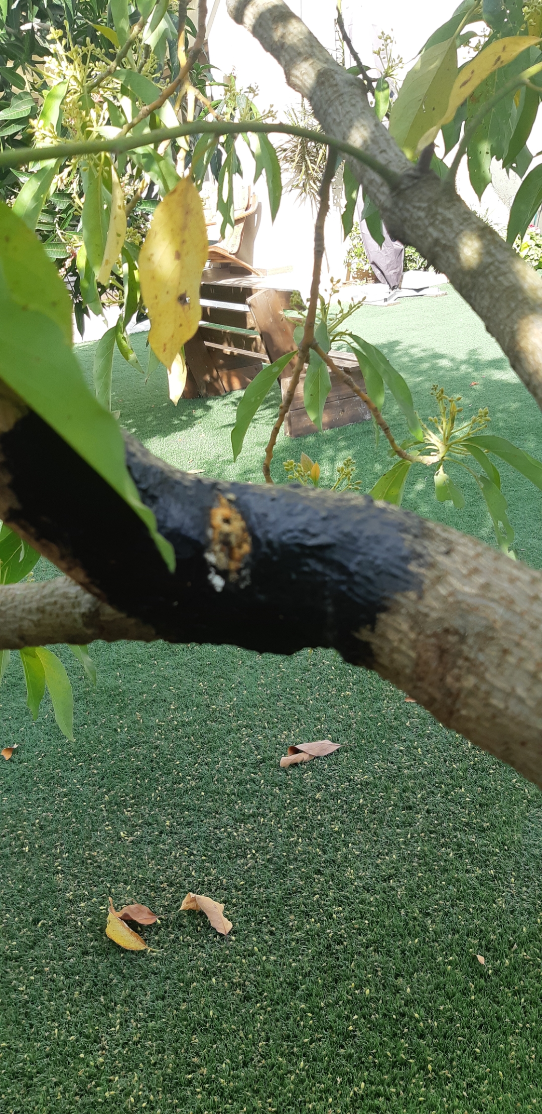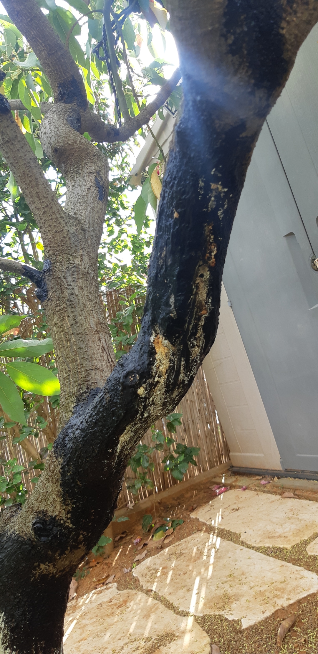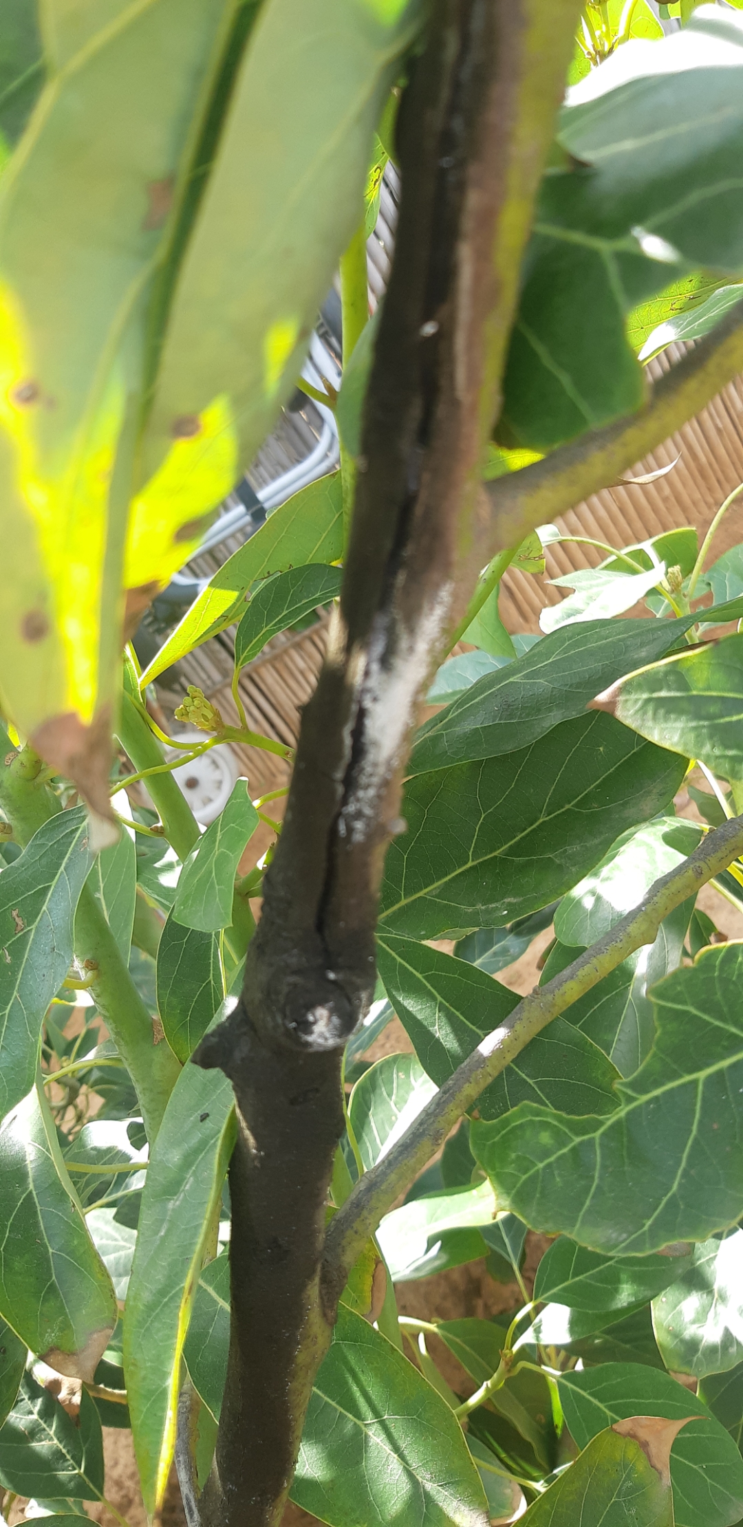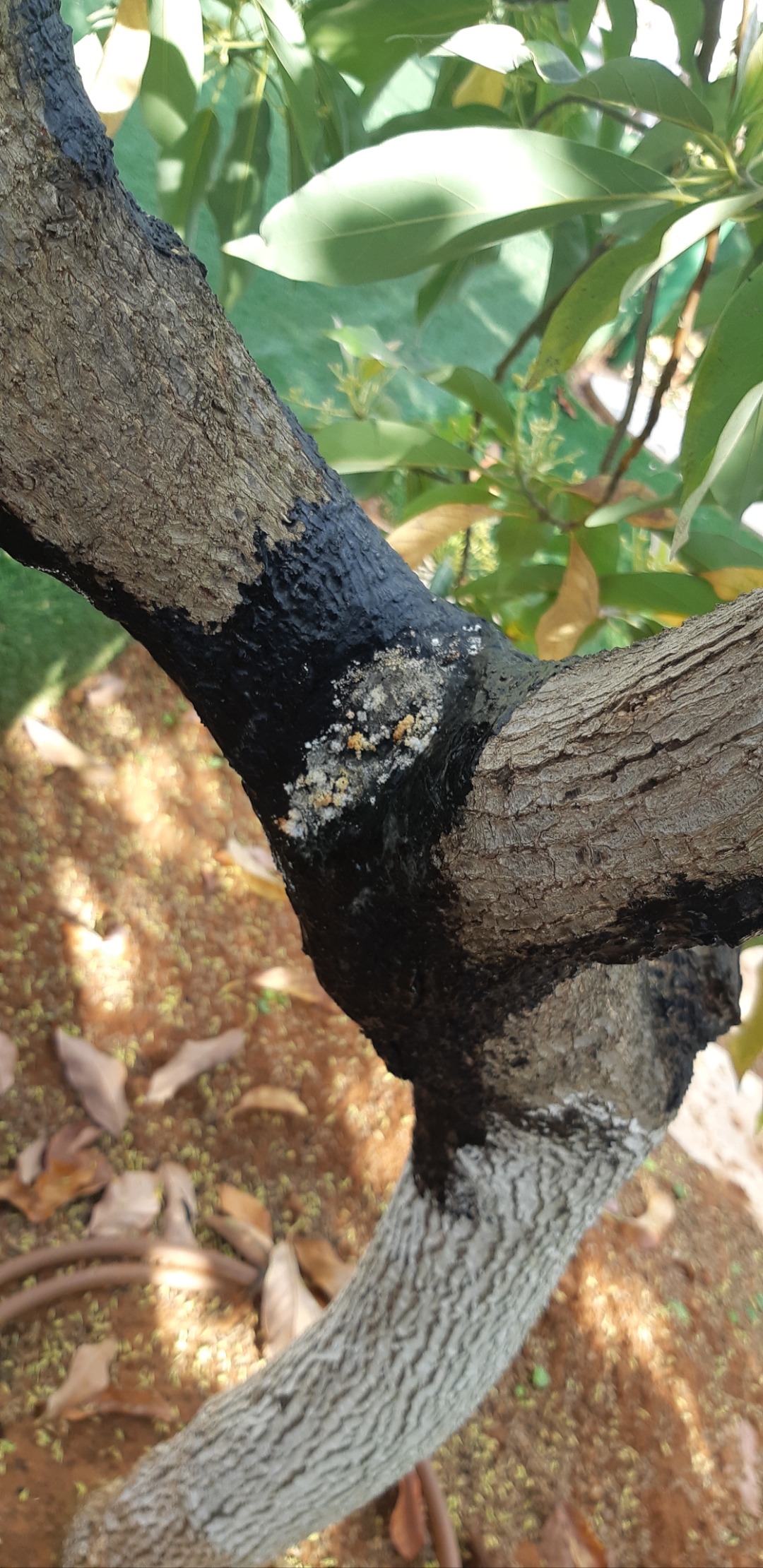 ברשותי 2 עצי אבוקדו אטינגר ואס שנמצאים 3 מ אחד מהשני .לשניהם יש ענפים שחורים עם כמו פטריה .לפי בירור באינטרנט מדובר על חיפושית אמברוזה ???