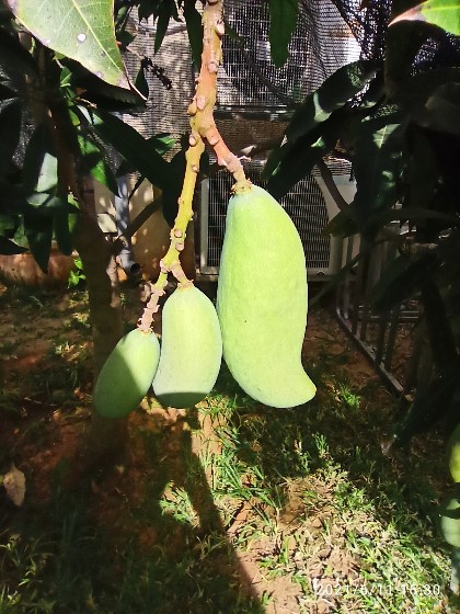 בחצרי עץ מנגו שהונבט מגלעין והוא אינו מורכב. הוא בן כחמש שנים.