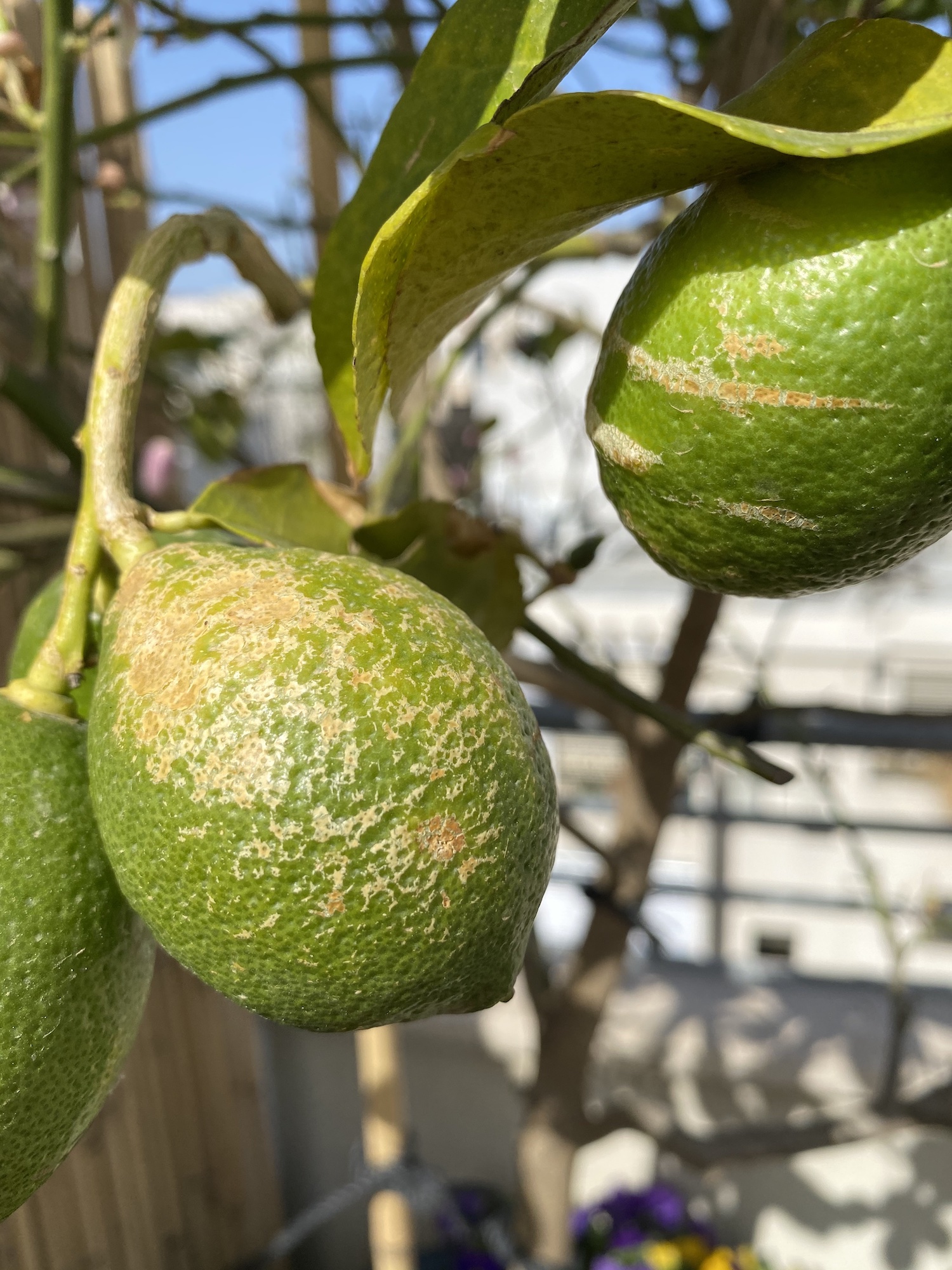 כל הלימונים עם כתמים והעלים החדשים לא בריאים. מצ"ב תמונות.