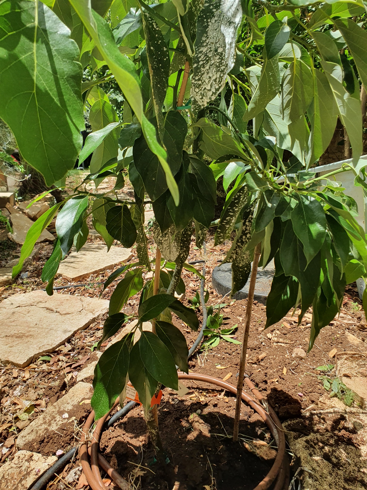 עץ האבוקדו שלי מזן אטינגר , הוא בן 5. שנה שעברה כל ענפיו היו בצבע חום עם כתמים לבנים. כל החנתים נשרו בהיותם בגודל זית. לא. ותר פרי אחד. גם כל עליו היו עם כתמי חלודה. השנה התושש וענפי ועליו, ירוקים. צמחו ענפים ועלים חדשים. נותרו מספר ענפים עם התופעה שלא ניראת טוב.