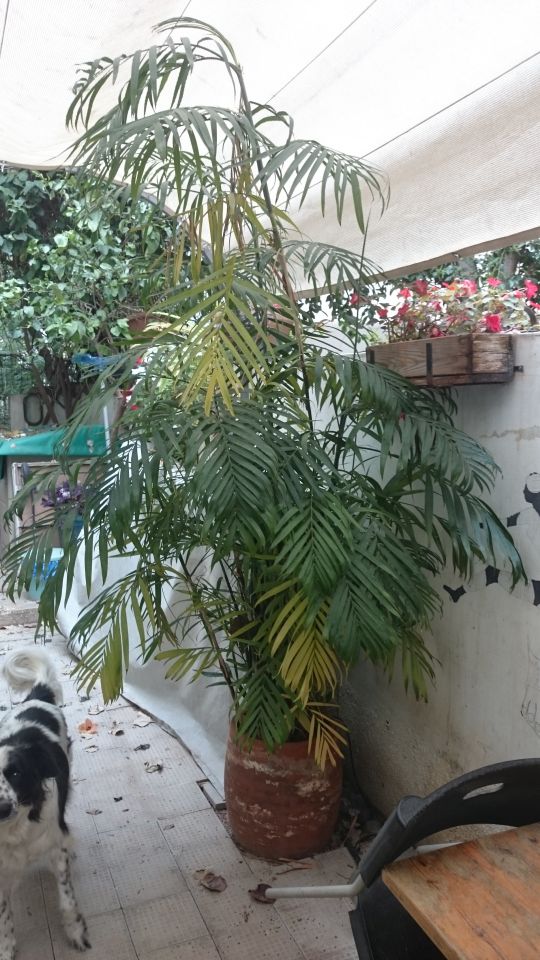 בשבועות האחרונים התחילו להצהיב עלים בשלושה צמחי כמדוריאה ספריצי אצלי בחצר.