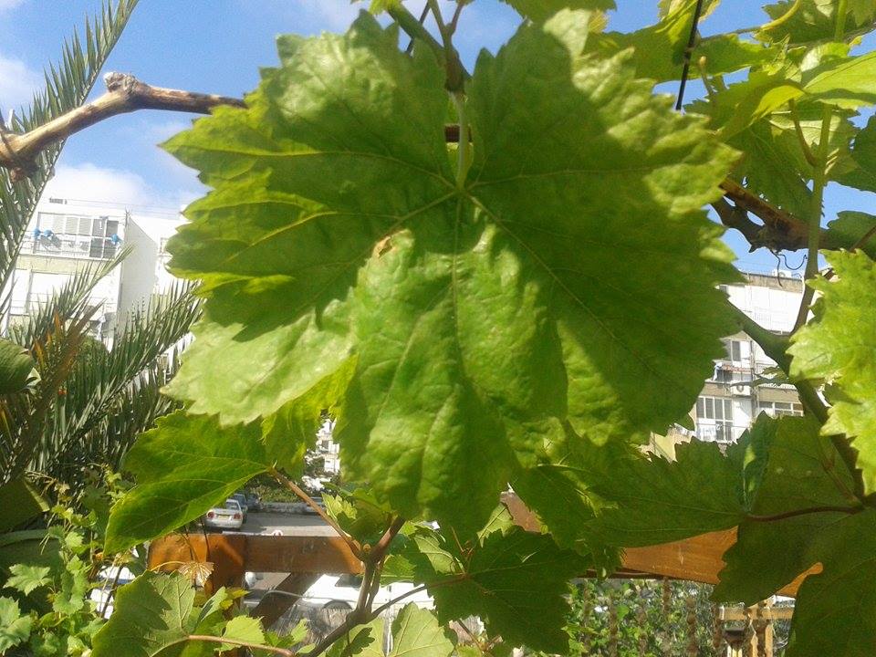 הגפן השנה לא נתנה פרי והעלים שיצאו באביב לפני חודש מתחלים להצהיב ונראים חוורים.