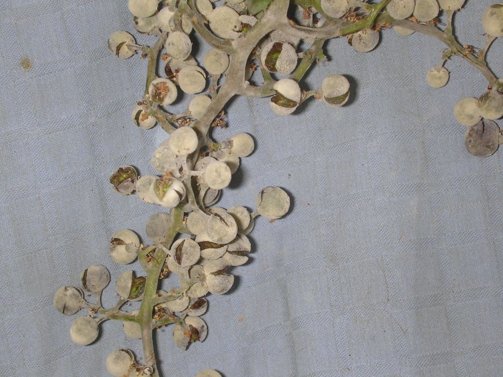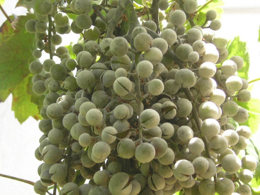 בהיותם בגודל אפונים כבר התבקעו.יש אשכולות שנראה כי חומר כמו אבקה לבנה עטף אותם האם זה קמחון??.