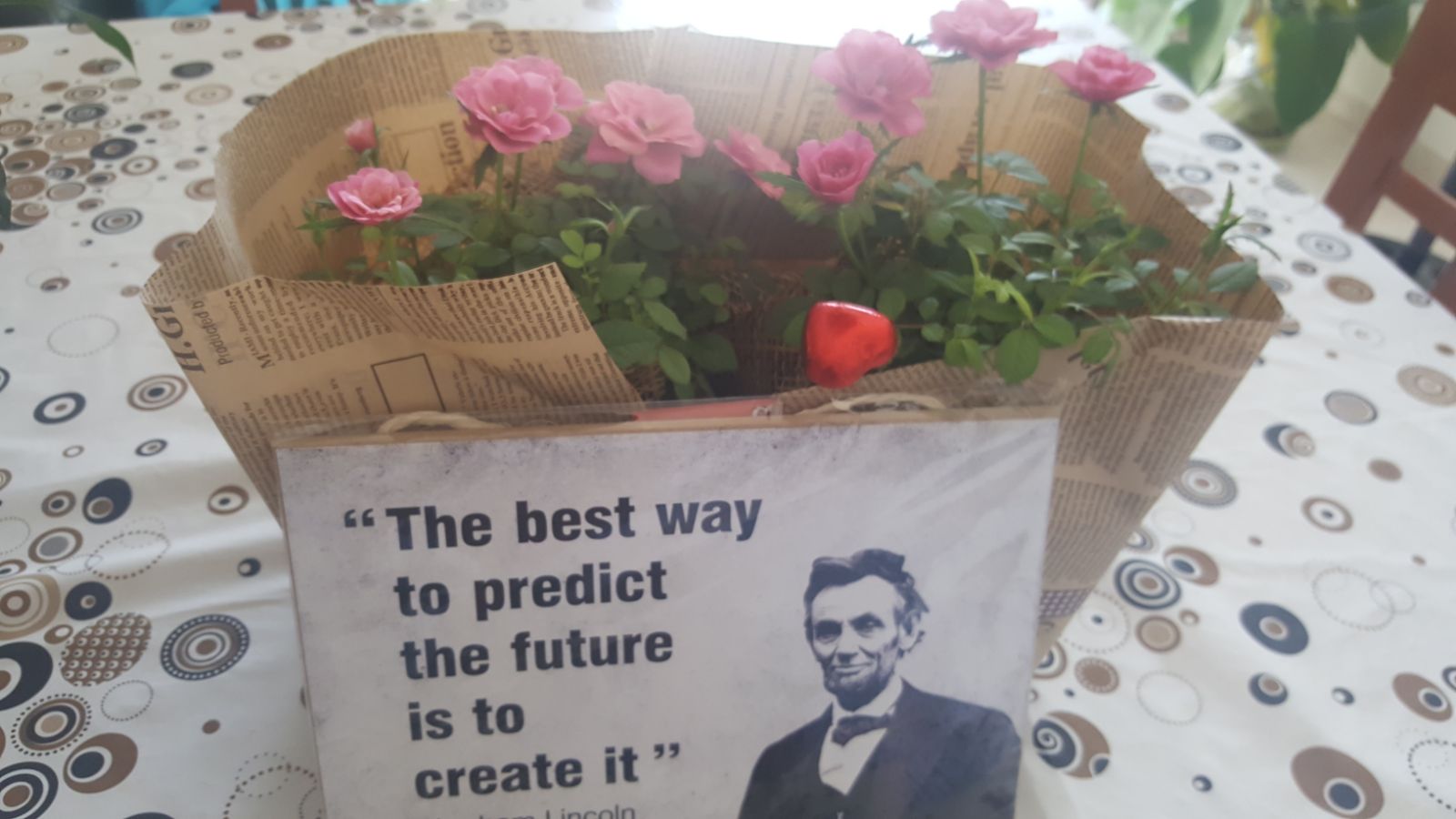 קיבלתי במתנה עציץ עם פרחים ורודים מקסימים למשרד