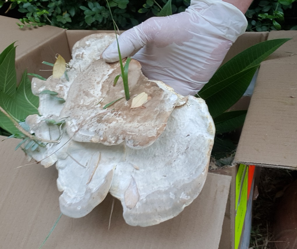 המדשאה שלי מוקפת שיחי מוריה מושקים בטפטפות. לפני חודש צמחה בגינה פטריית ענק - היה קשה לעקור אבל עקרתי וסילקתי. היום גיליתי שבהמון מקומות מוצלים בין המוריות או בנקודת הצמיחה שלהם צמחו פטריות כאלה.
