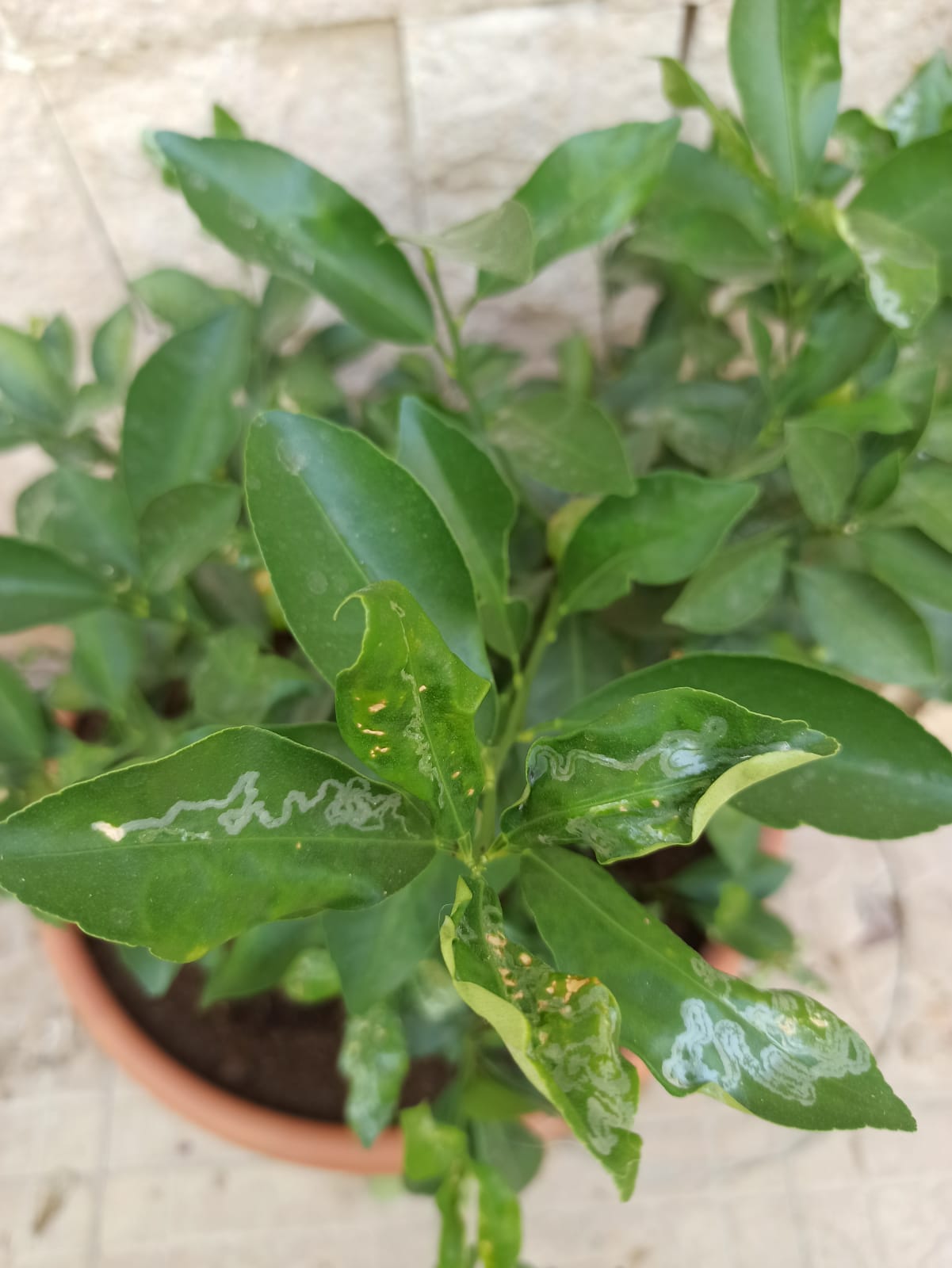 שתלנו לפני מספר חודשים צמח קלמונדין בעציץ גדול. לאחרונה עליו של הצמח קיבלו צורה מוזרה ומקופלת. על  עליו נראה שעבר בעל חיים כמו חילזון שהשאיר סימן על העלים. מצרף תמונה.