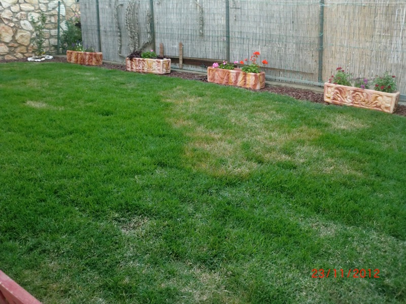 הדשא נקלט טוב אבל בשבועיים האחרונים ישנם כתמים צהובים/ יבשים