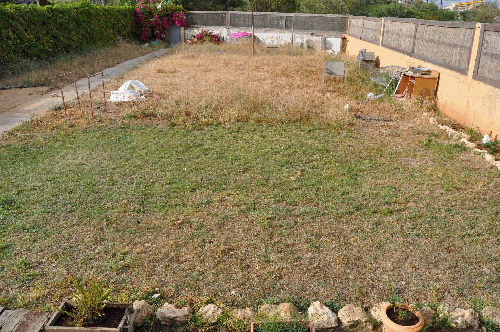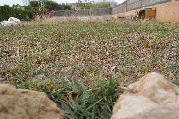 את כול העשבים שצצו בו במהלך החורף והאביב תלשתי מהשורש שלהם. הקרקע מרגישה דחוסה.