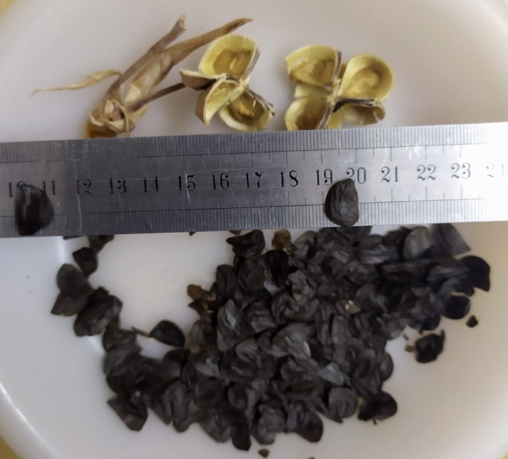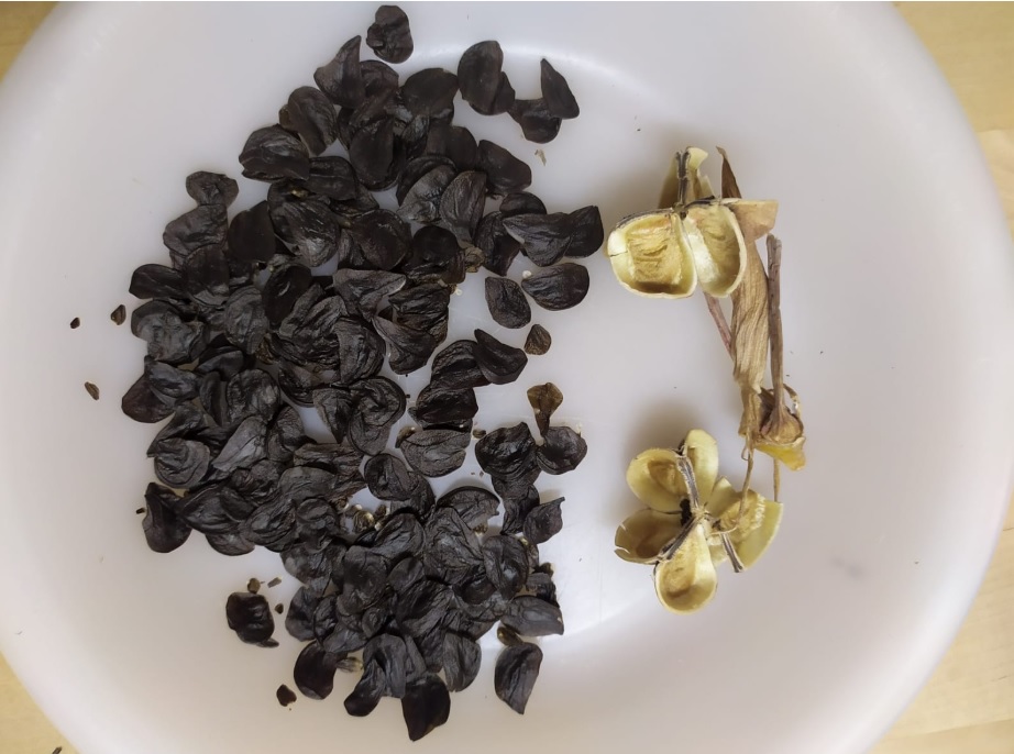 הלבשתי שקית בד על ההלקטים, וכעת אספתי את הזרעים.