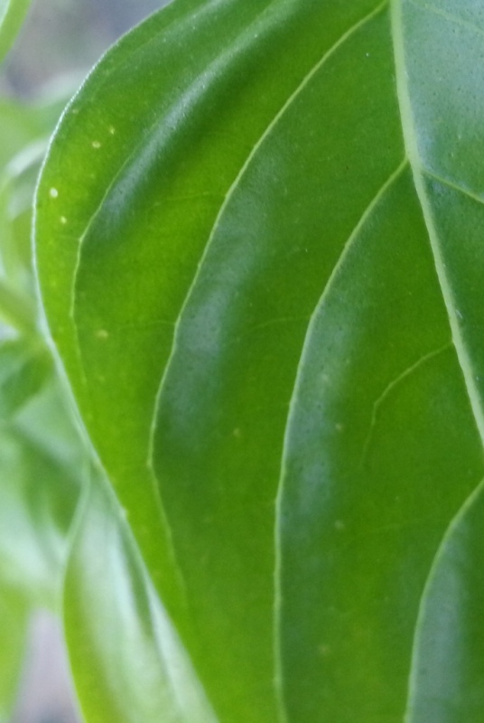 בזיליקום - התחלה של כתמים בהירים קטנטנים ועגולים על גבי העלים