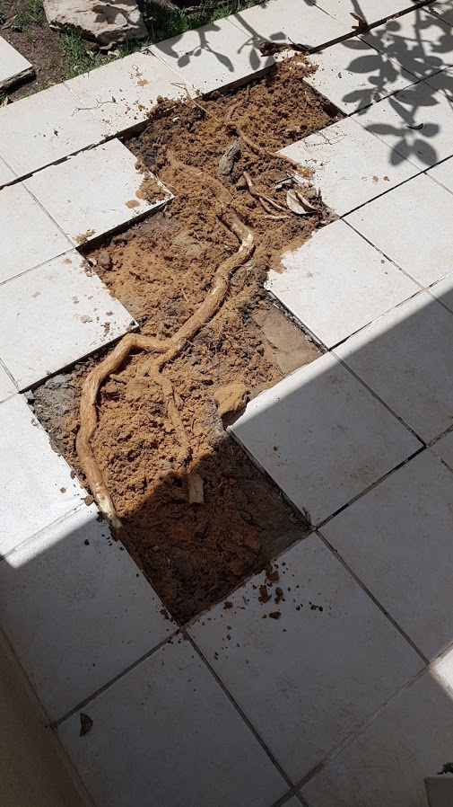 מבקש את עזרתכם בטיפול בבעית שורש של עץ פיטנה אשר חדר מתחת לריצוף משטח בחצר.