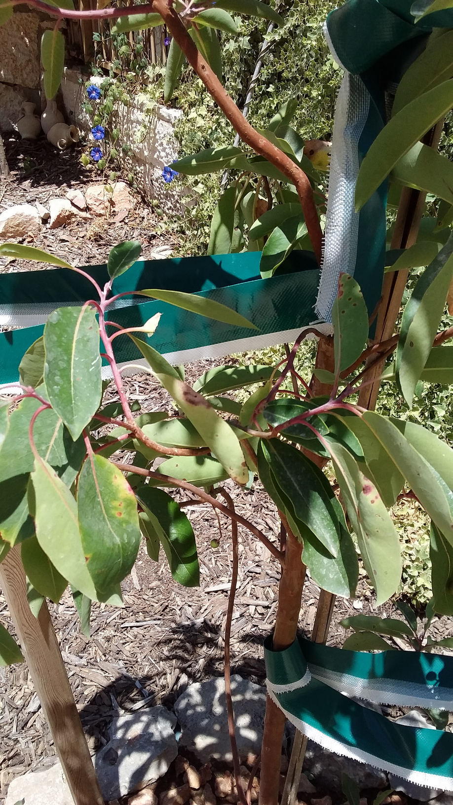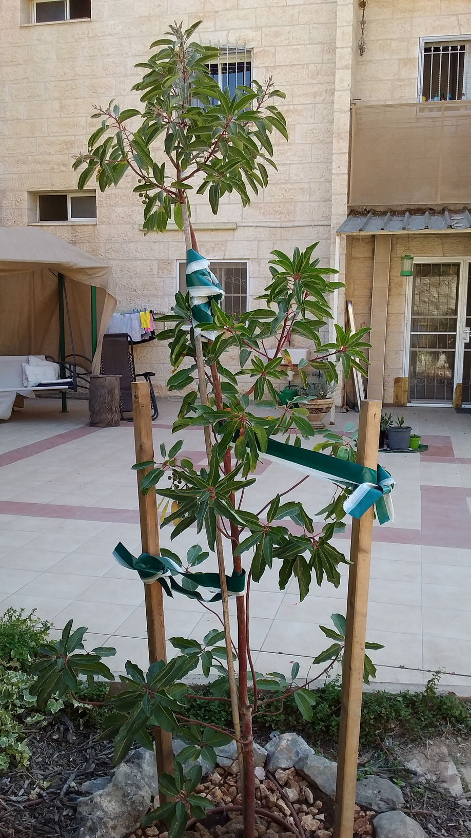 העץ מקבל 36 ליטר מים לשבוע בטפטוף בשעות הערב.