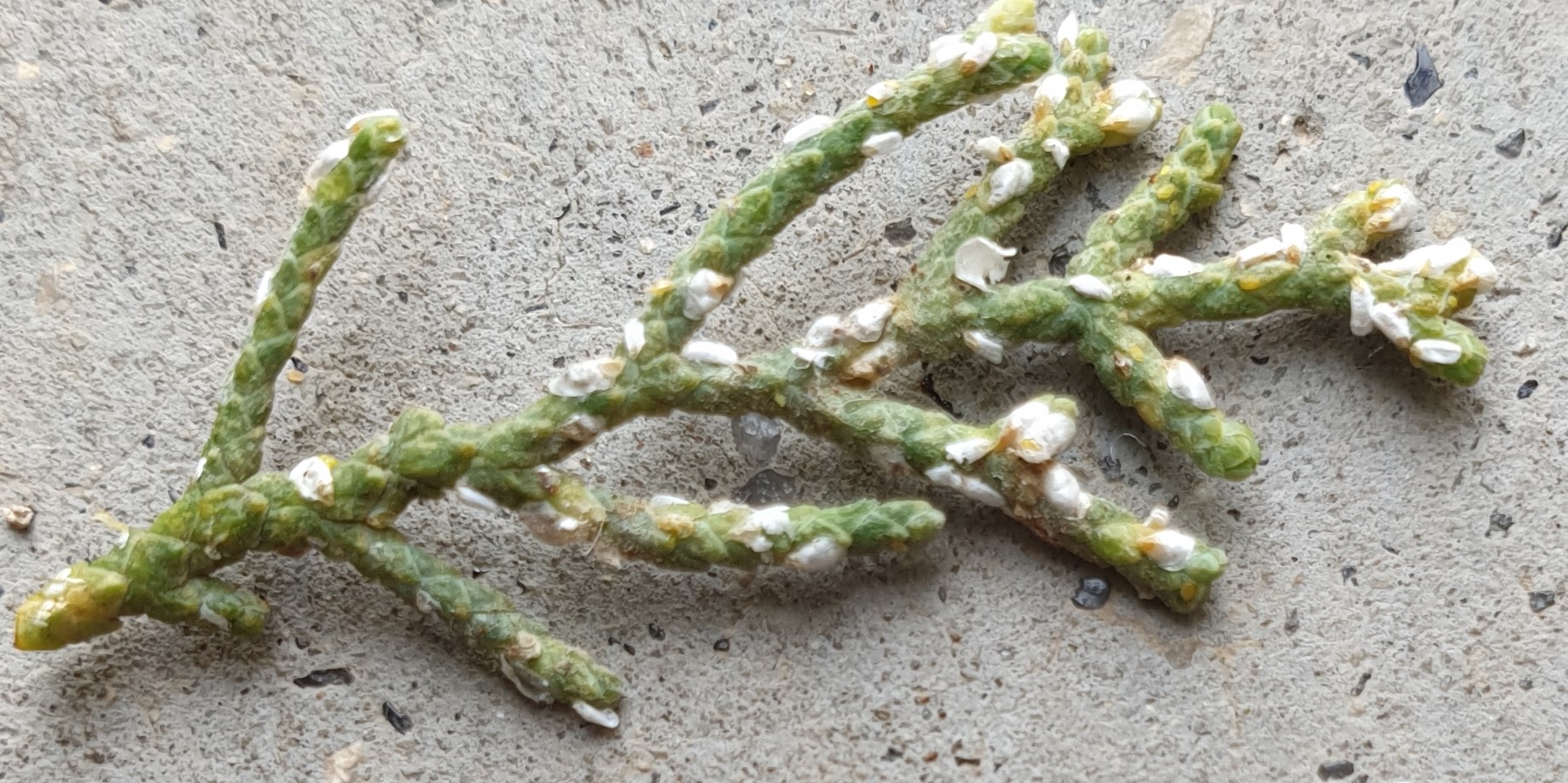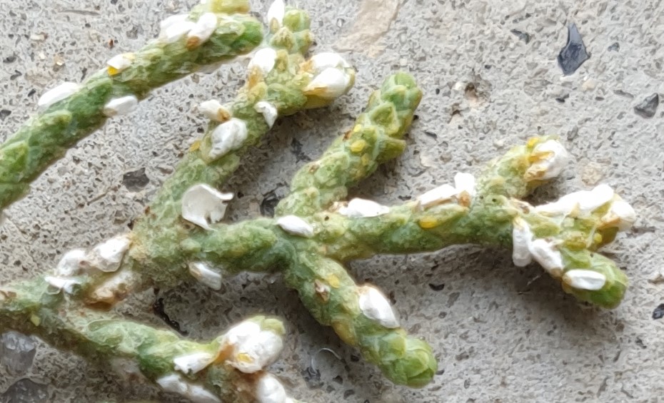נסה לגרדן ביד או במכשיר חד. אם הן יורדות ואולי גם פולטות נוזל חום,אז אלו כנימות קמחיות. טיפולים:הגמעת קונפידורים-לפי המחיר הזול יותר.ריסוסים במוספילן או בפלאש. אם אינן מתגרדות במכשיר או ביד אז הן חלק מהצמח. אם אפשר לקבל תמונות תקריב.רצוי דרך צור קשר.