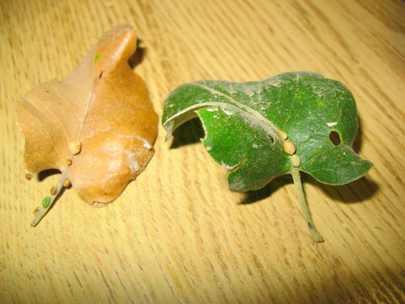 שלום, מזה כמה שבועות אני רואה מעין 'גידולים' שנראים כמו גלמים של חרק מסויים, על עלי האלון (אלון התולע). העץ שתול אצלי 10 שנים.