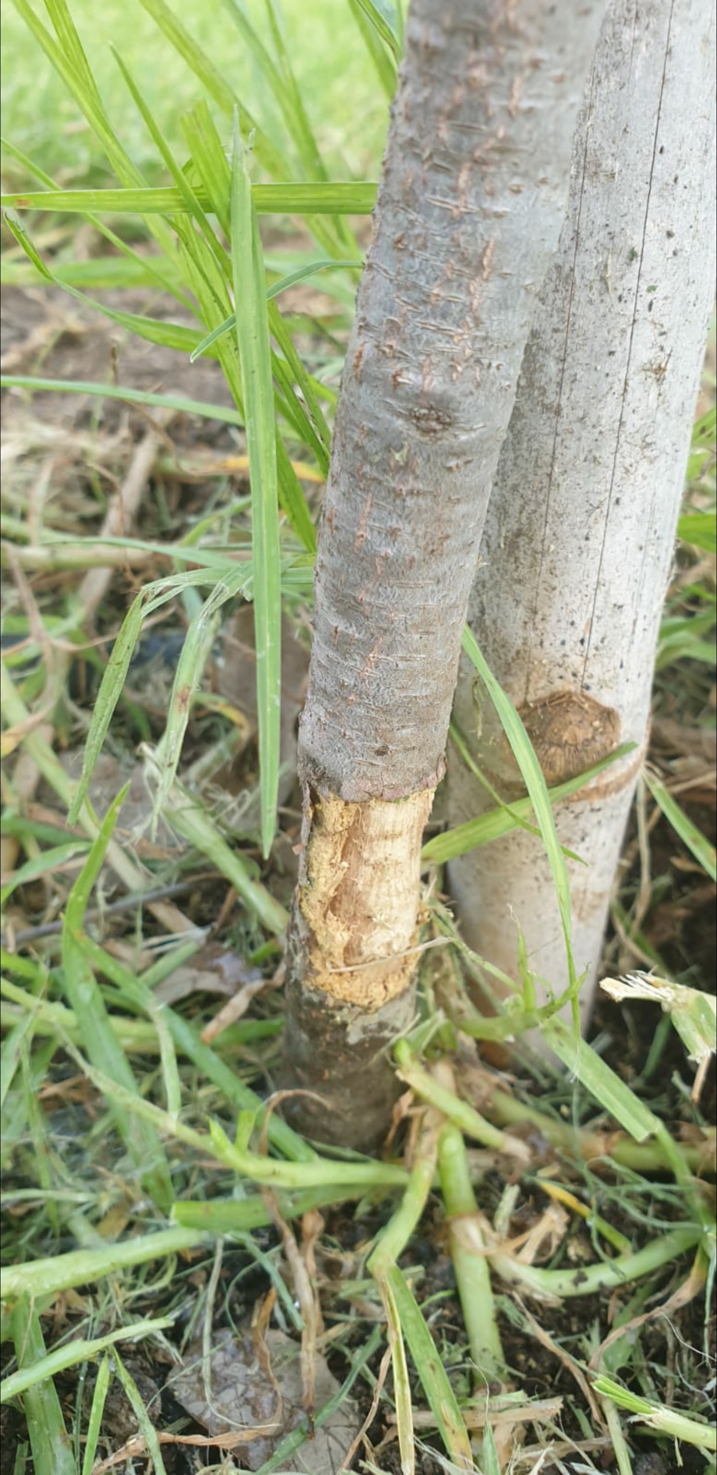 אדם שעשה עם חרמש פגע לי בגזע עץ אלון שעם צעיר ששתלתי.