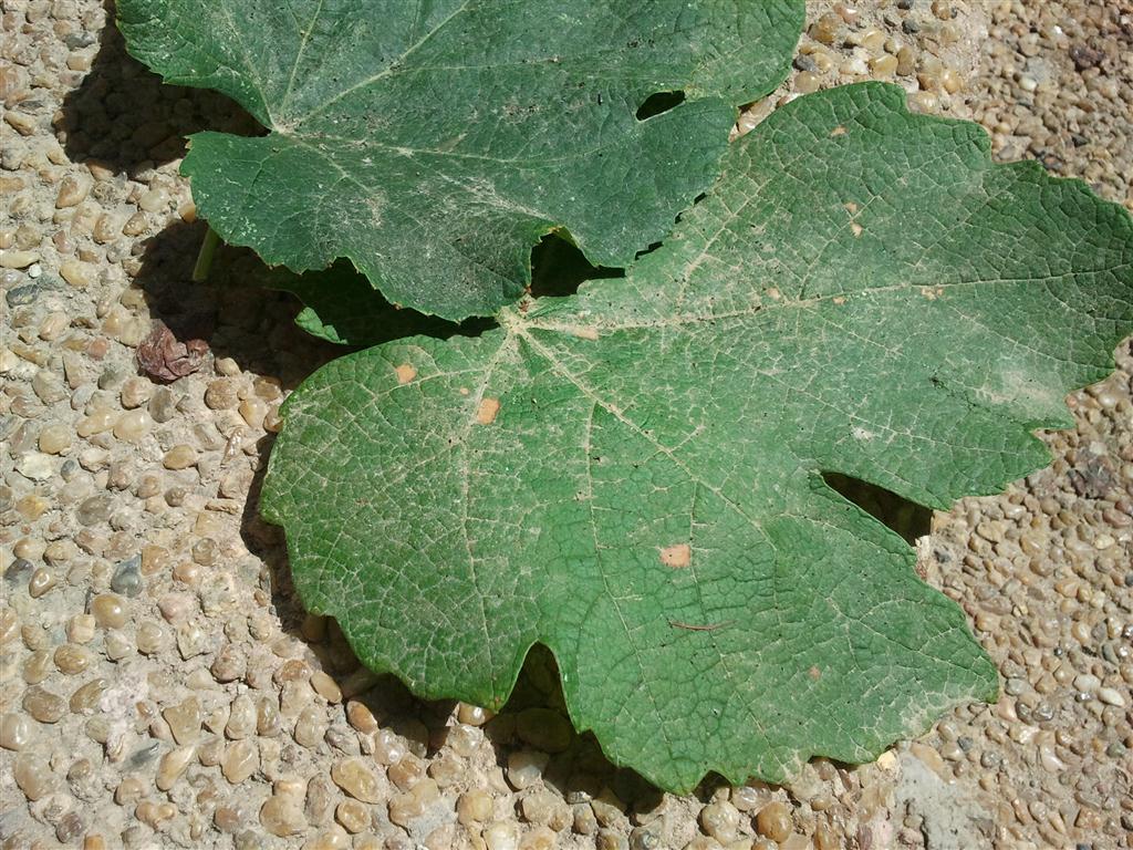 2. סמתי לב שעל חלק מעלי גפן ישנם כתמים חלודים עם נקודות שחורות בפנים. יכול להיות ששתי בעיות הללו קשורות אחד לשניה? יכול להיות שמדובר על המחלות של הגפן?