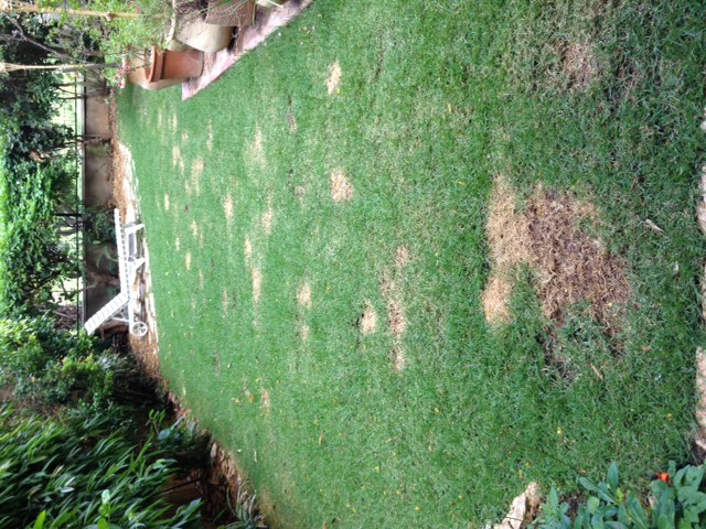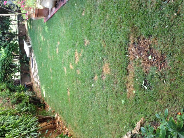 צלם, בבקשה, שוב את התמונה הלפני אחרונה. דרושה תמונה יותר טובה של העובש, אם אכן זה הוא. עובש הוא פטריה שצריך להדביר. "איוורור" על ידי גריפת כל העלווה היבשה הוא חשוב אבל לא יפתור את בעית הפטריה. אין לי טיפים כנגד הפרשות הכלבה שלך. אם זה בסדר מבחינתך, ניחא. אבל עם הזמן תשאר ללא דשא של ממש. אולי היה כדאי לך לחשוב על דשא סינתטי, אם-כי איני חסיד שלו.
